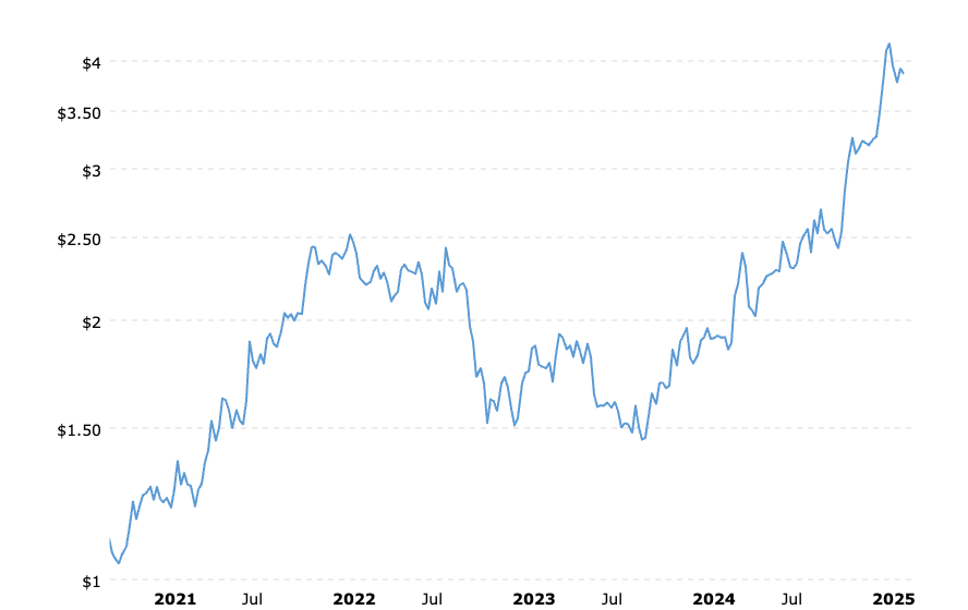 De grafiek hieronder laat zien hoe de prijzen op de koffiemarkt in korte tijd zijn verdubbeld en inmiddels historische hoogten hebben bereikt. We houden de ontwikkelingen scherp in de gaten en houden je op de hoogte.