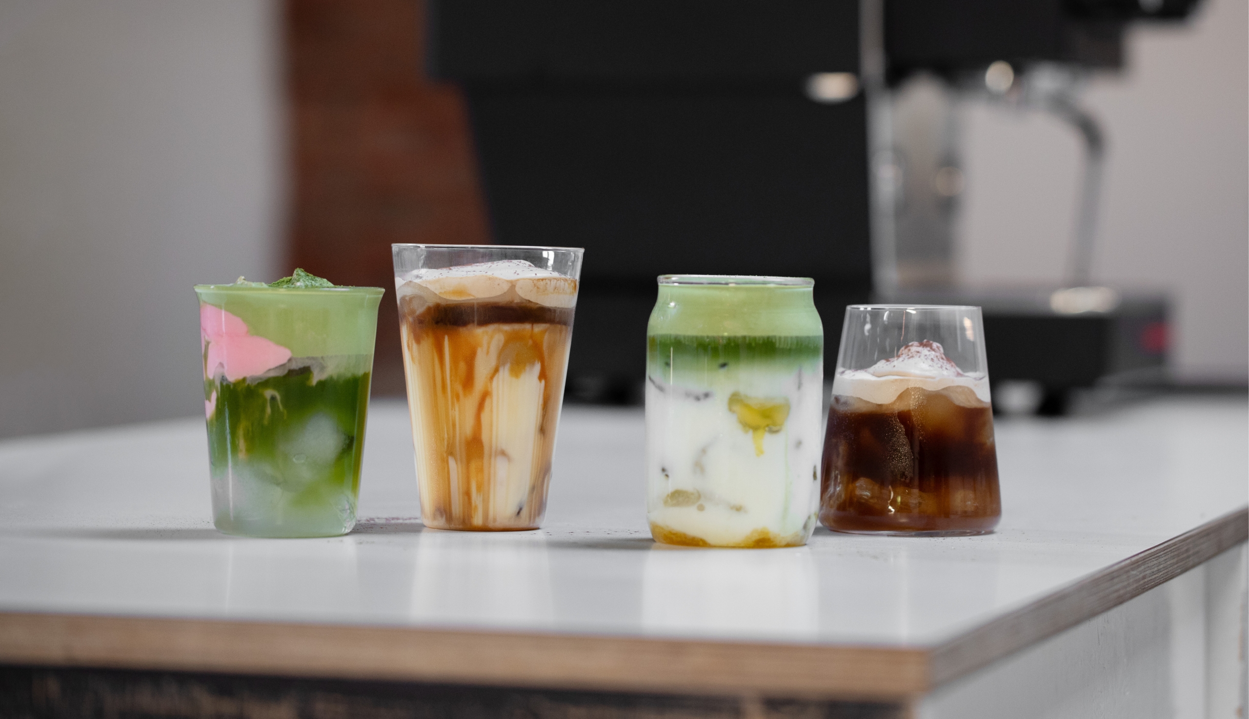 Heb je geen slagroomspuit? Klop de matcharoom dan kort los met een garde of mixer tot een licht romige, nog schenkbare structuur. Gebruik de room vervolgens als topping of saus over desserts, ijs of koffiespecials.